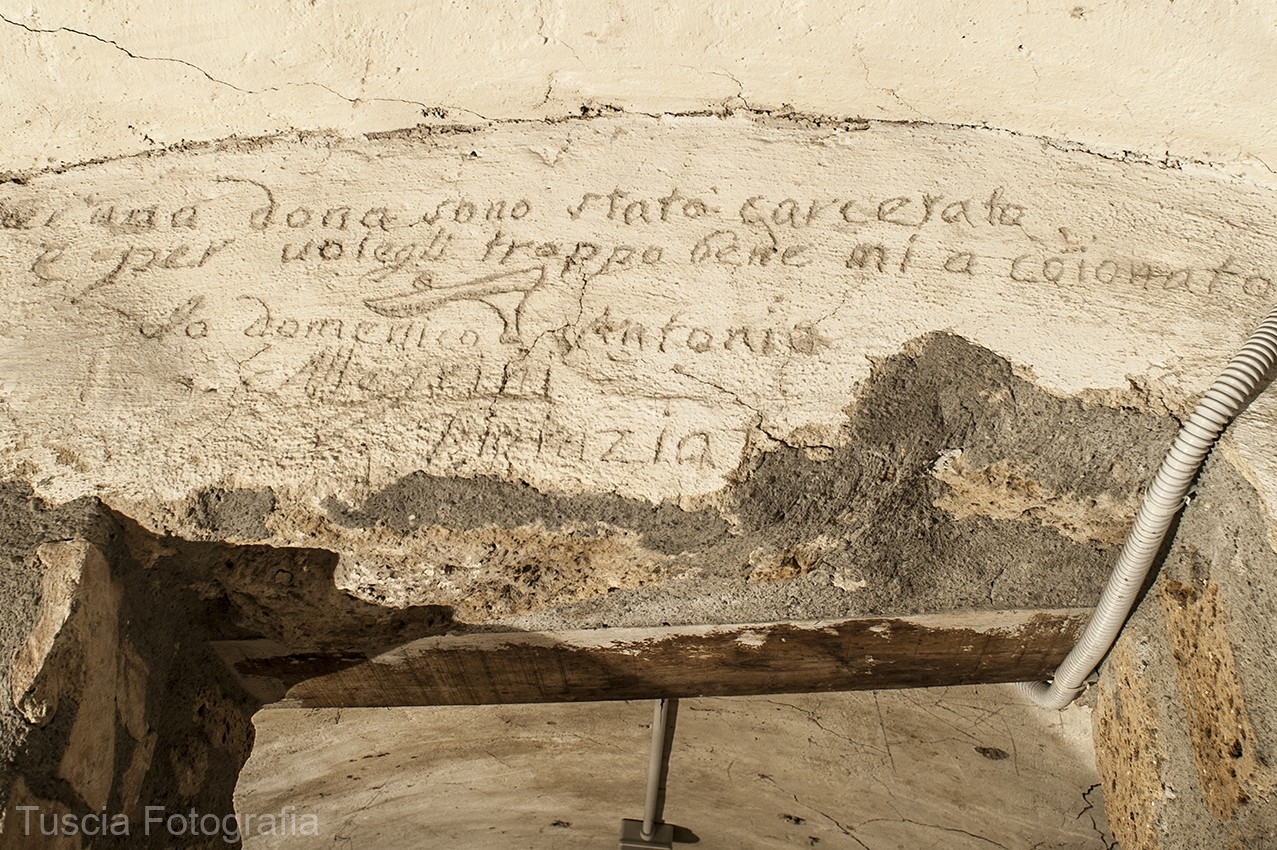 La seconda era riservata ai condannati a morte, mentre nell’ultima, la più ricca di graffiti, con molta probabilità albergavano gli eretici e gli adulteri, come si legge nella frase incisa da uno schietto condannato che recita: “per una donna sono stato carcerato e per volegli troppo bene mi a coionato”.