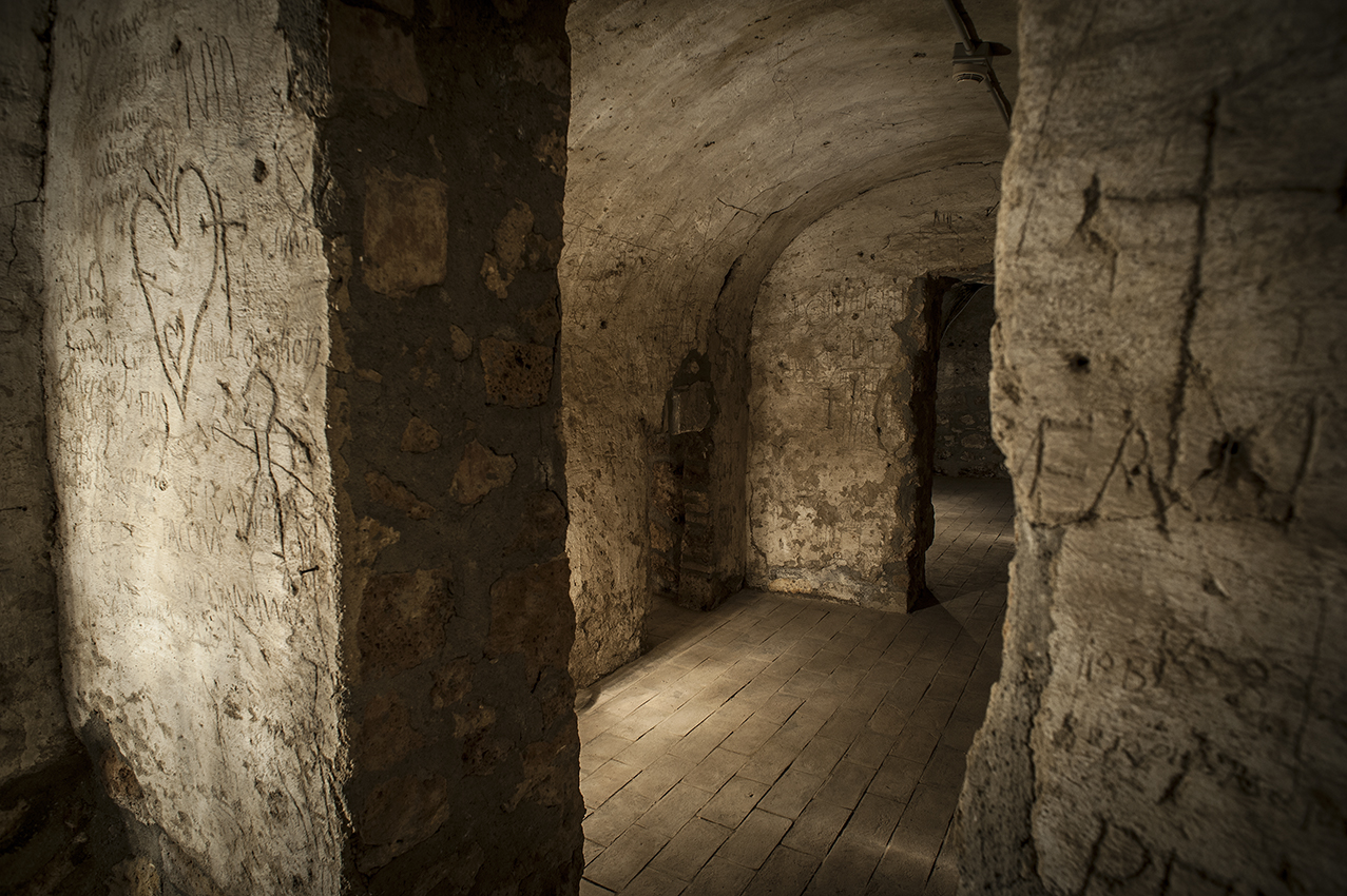 I muri recano i segni dell’ombroso passato dei sotterranei: graffiti, disegni, simboli, scritte, dediche e oltraggi, che restano scolpiti anche nella mente del visitatore odierno.