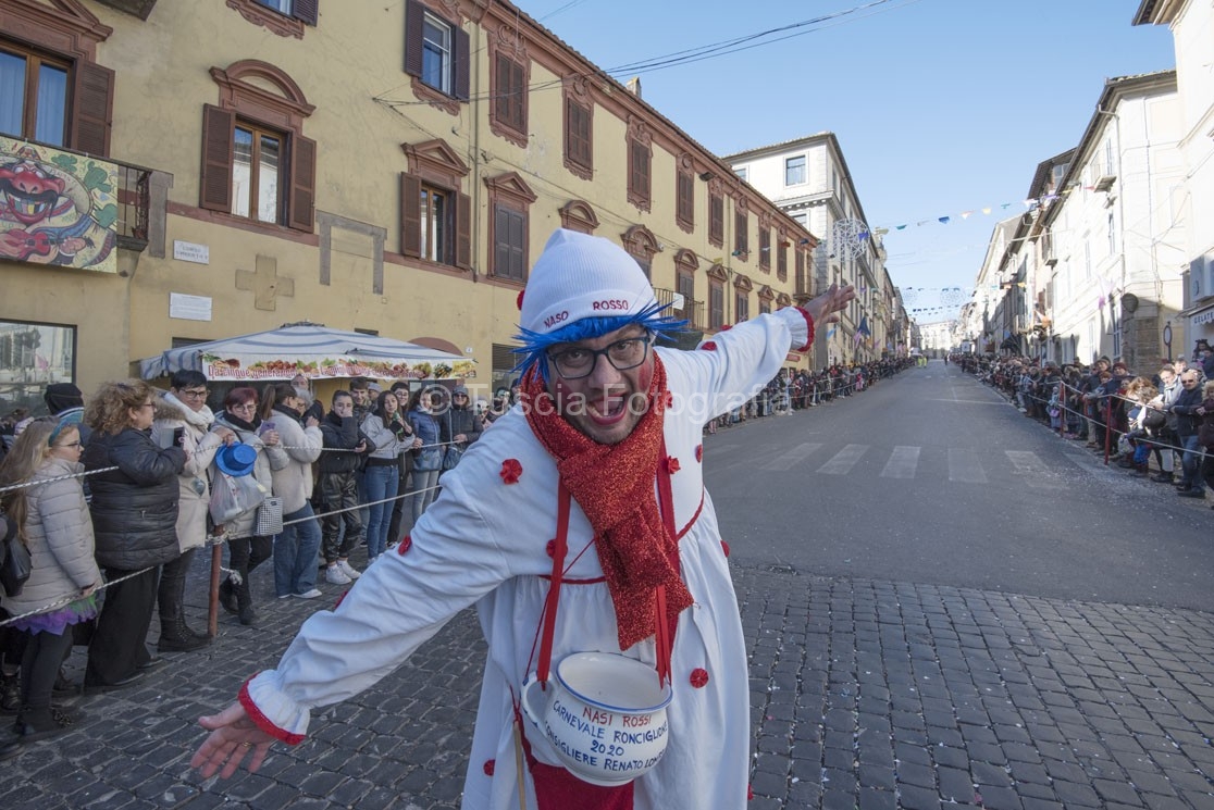 Al centro della festa, protagonista di una sfilata, la maschera tipica di Ronciglione, nata agli inizi del ’900, il Naso Rosso, “che incarna l’anima buontempona – come si legge sul sito – satirica, godereccia, che è nello spirito del ronciglionese, uno spirito indipendente, dalla battuta pronta, ironico quanto basta e, soprattutto, dissacratore.” Altra figura legata al Carnevale di Ronciglione è il drappello degli Ussari, con una storia che risale alla fine del 1800, quando questo corpo militare iniziò a partecipare alla festa con una galoppata nella salita di Corso Umberto I, e che viene ripetuta ad ogni inizio sfilata.