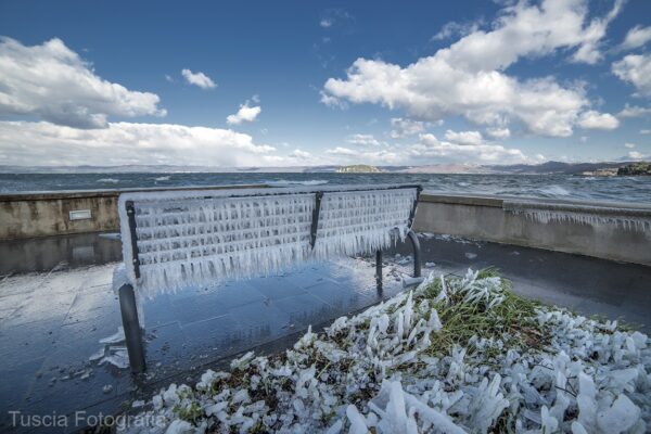 Freddo e gelo, un connubio razionale unita alla tramontana che soffia sul Lago di Bolsena non fa che accrescere le sculture di ghiaccio nell’approdo del borgo di Marta.